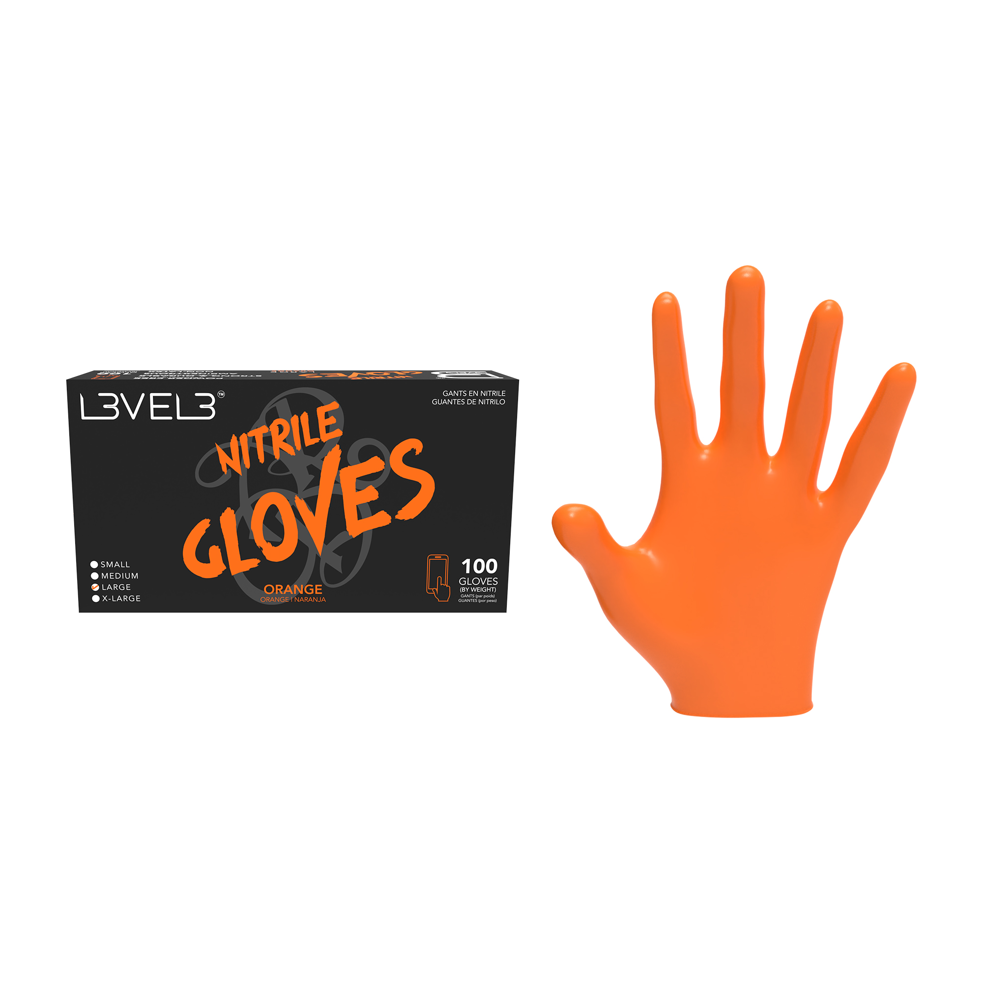 - L3VEL3 NITRILE GLOVES ORANGE 100CT